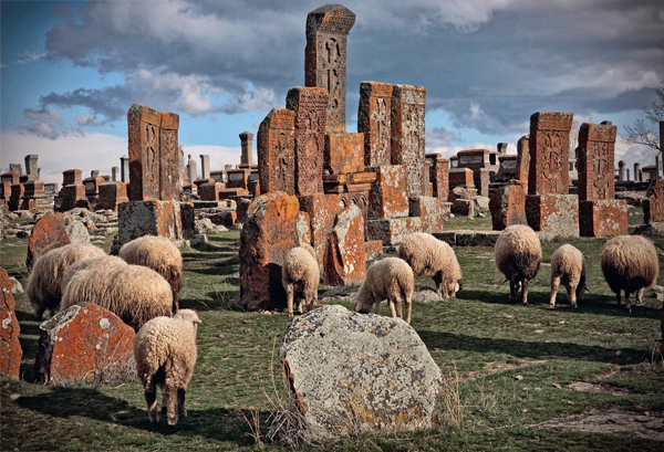 Кладбище хачкаров у села Норадуз, на берегу озера Севан. Самое крупное кладбище хачкаров раньше находилось в Джульфе, на территории Нахичеванской Автономной республики (Азербайджан). Но оно было разрушено в 2000-х годах