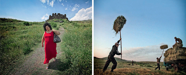 По дороге в Амбердскую крепость, выстроенную на склоне Арагаца еще в VII веке и служившую военным оплотом княжеской династии Багратуни, останавливаемся, чтобы побеседовать со старушкой. В белоснежных кофточке и платке, с посохом в руках и котомкой за спиной она стоит на склоне по пояс в травах. Зоя-джан прекрасно говорит по-русски, она долго жила в Иркутске. Сейчас время сбора зверобоя и кипрея, пучки которых торчат у нее из котомки. Окрест кипят-гудят пчелы, и храм цветущего куста шиповника на обочине дороги раскланивается с нами под ветром.